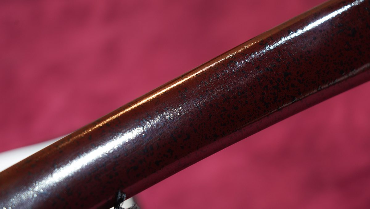 The blade is then sheathed in an oil lacquered saya with brass shitodome and thick sageo.