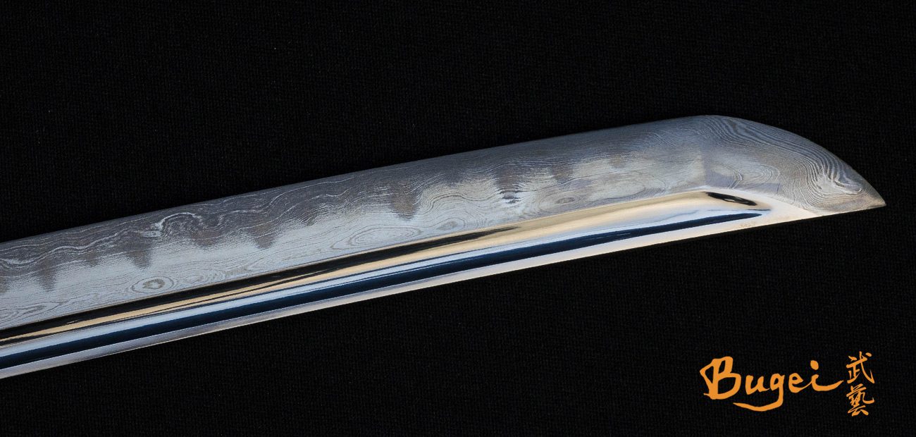 The blade is hand-forged and folded using a mix of T10 tool steel and 1055 carbon steel. This combo gives it both strength and flexibility. Folding the steel creates a bold grain pattern (hada) across the blade, and the clay tempering adds a real O-Choji hamon that hardens the edge for cutting.