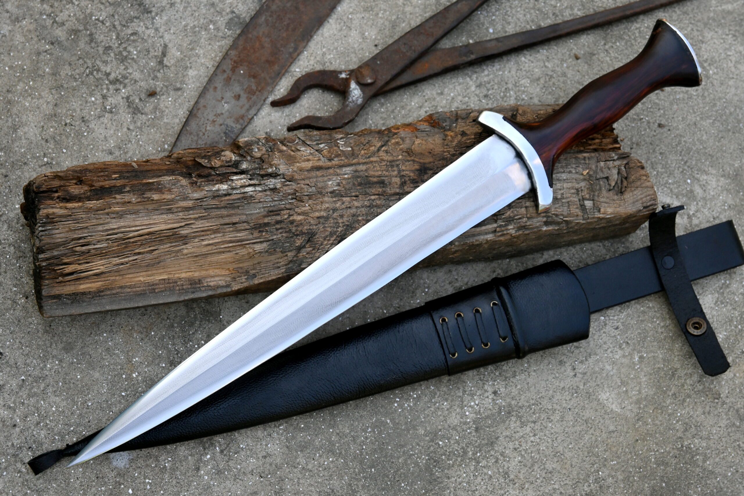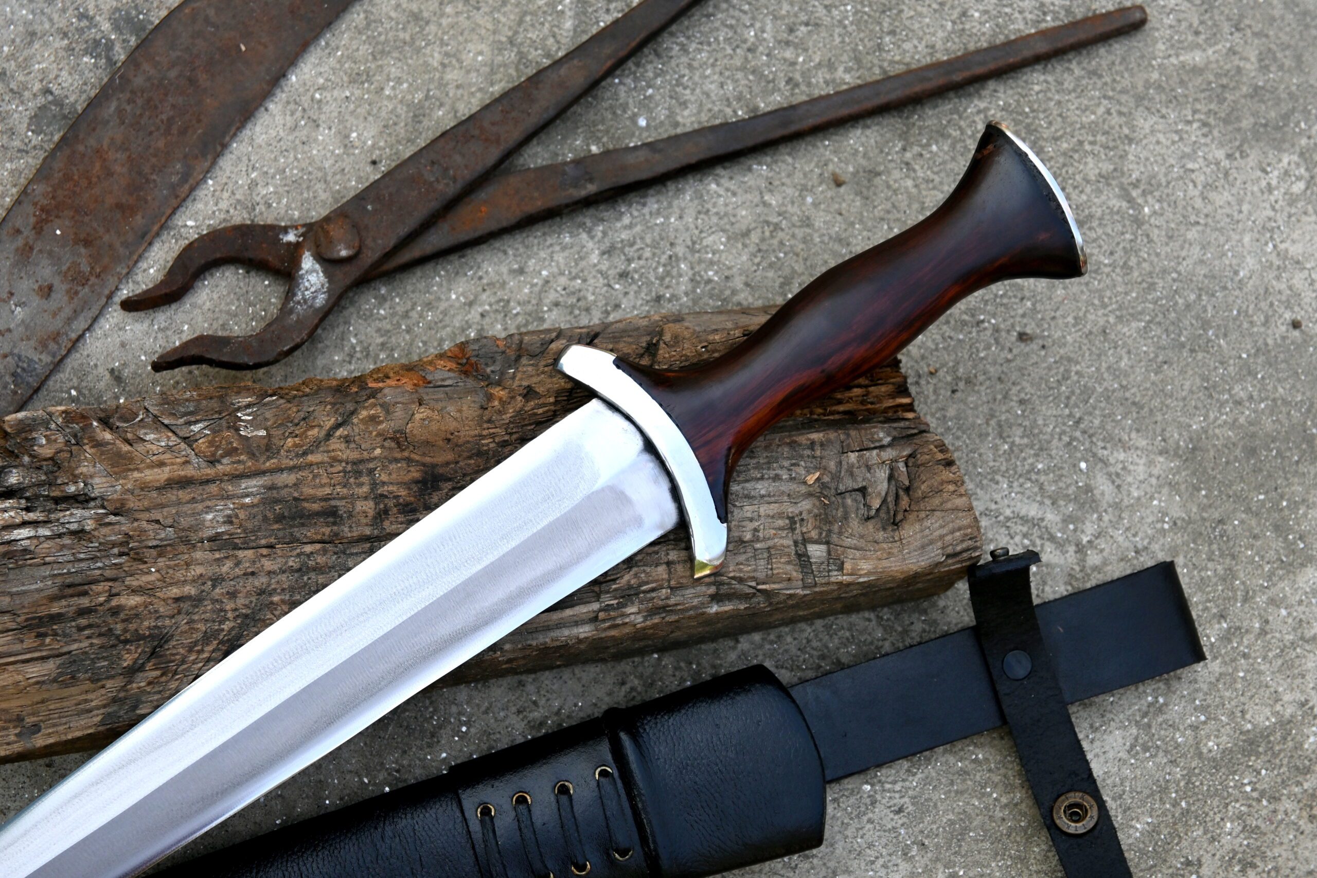 The handle is crafted from durable rosewood and showcases a historically accurate hourglass shape, complete with a forward-narrowed guard to ensure a firm and secure grip, even when used with armored gloves.