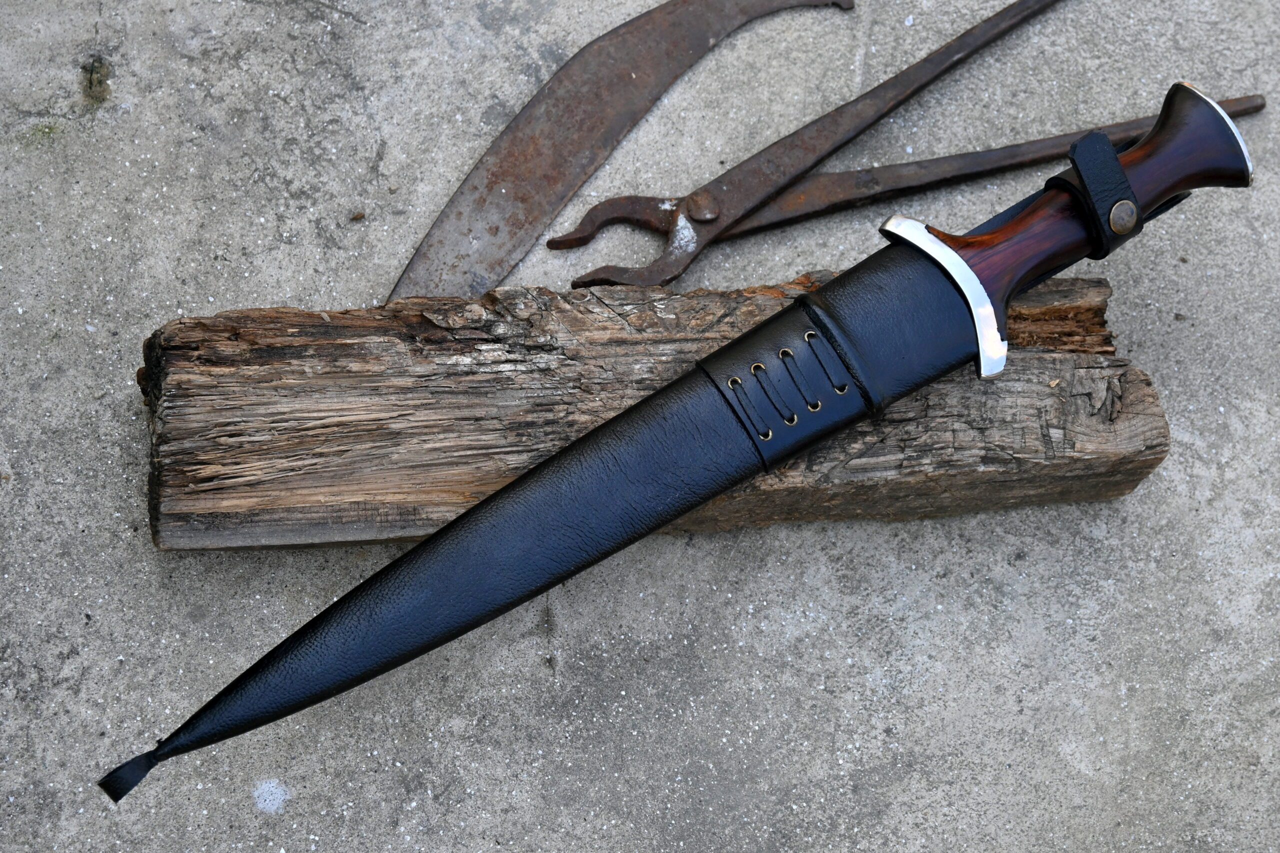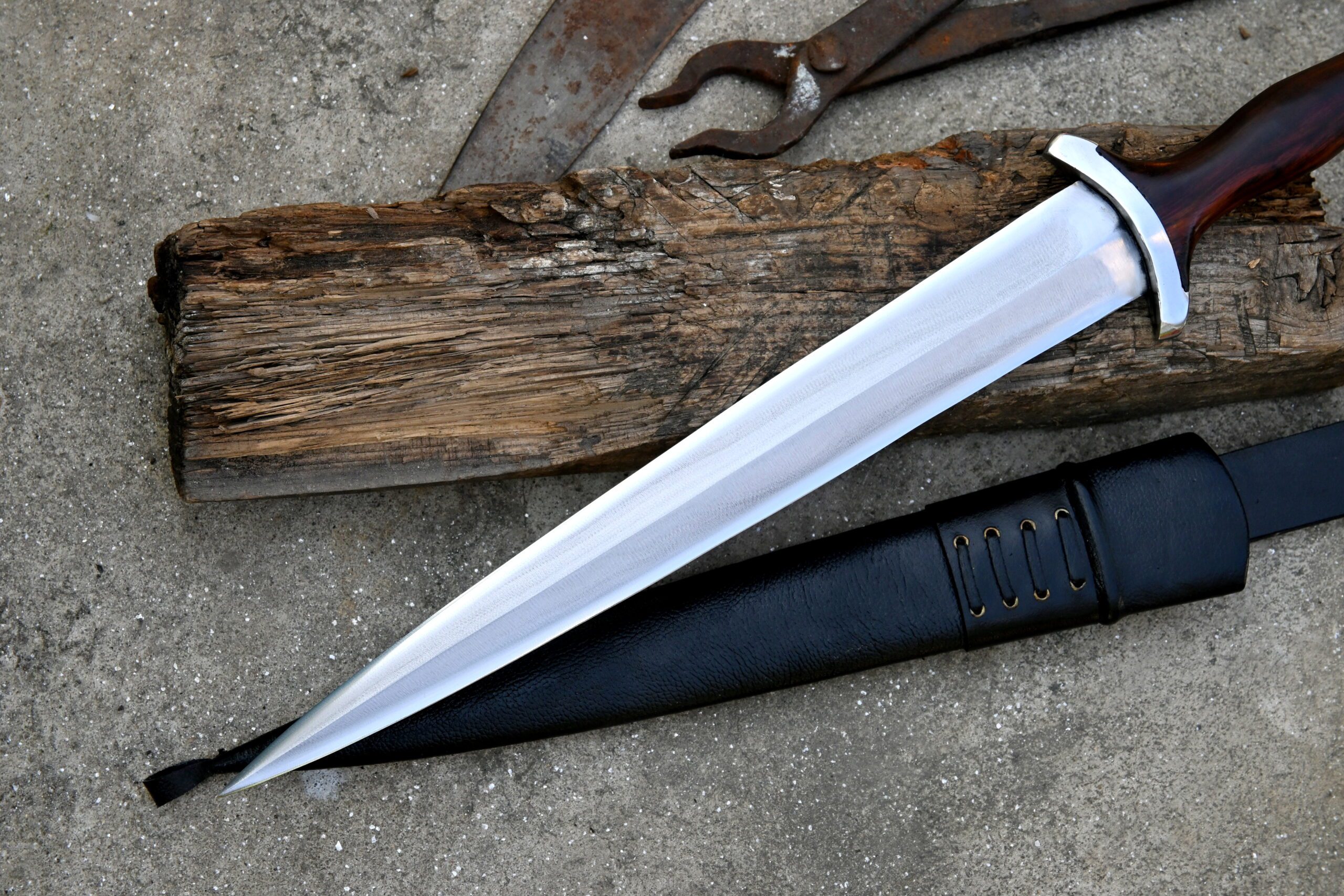 Our functional replica represents one of the earliest models, built for both authenticity and light performance use. The blade is forged from resilient 5160 spring steel, sharpened on both edges, and features a reinforced mid-rib to strengthen its core and culminate in a piercingly sharp tip.