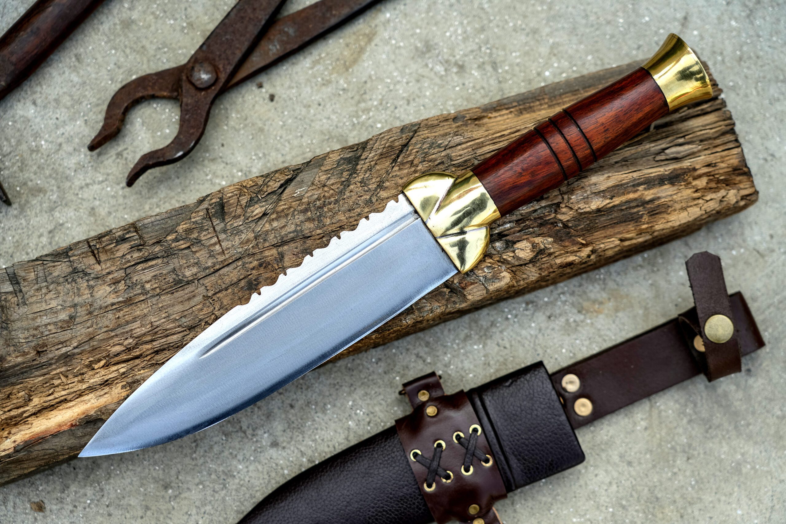 The Scottish Dirk, a symbol of valor among the fierce Highland warriors, was historically wielded both in battle for freedom and as a daily means of self-defense against a range of enemies. This functional replica honors that proud tradition, featuring a ceremonial ribbed spine reminiscent of authentic historical designs.