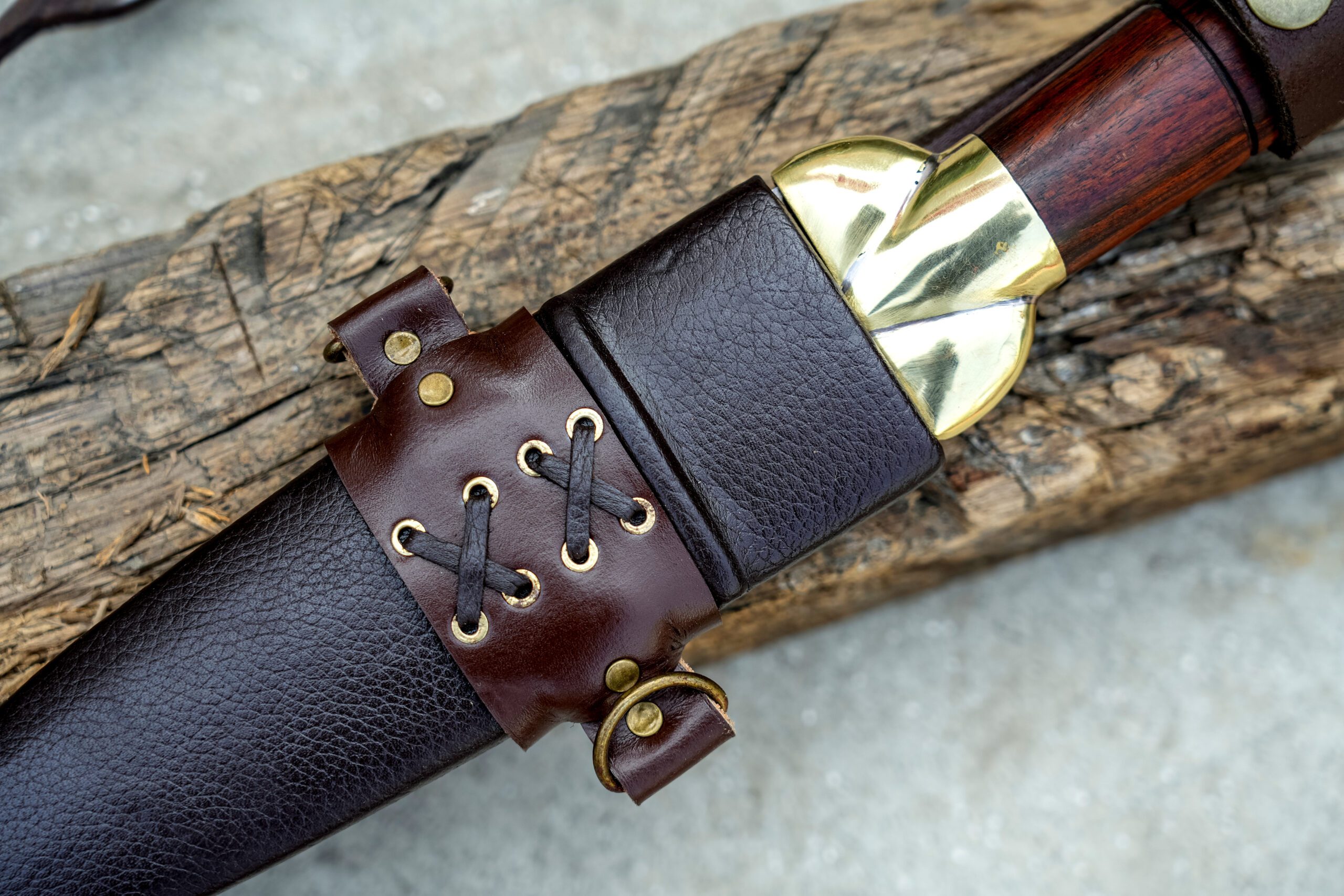 Completing the ensemble, a hand-stitched leather scabbard provides secure and stylish storage for the blade.