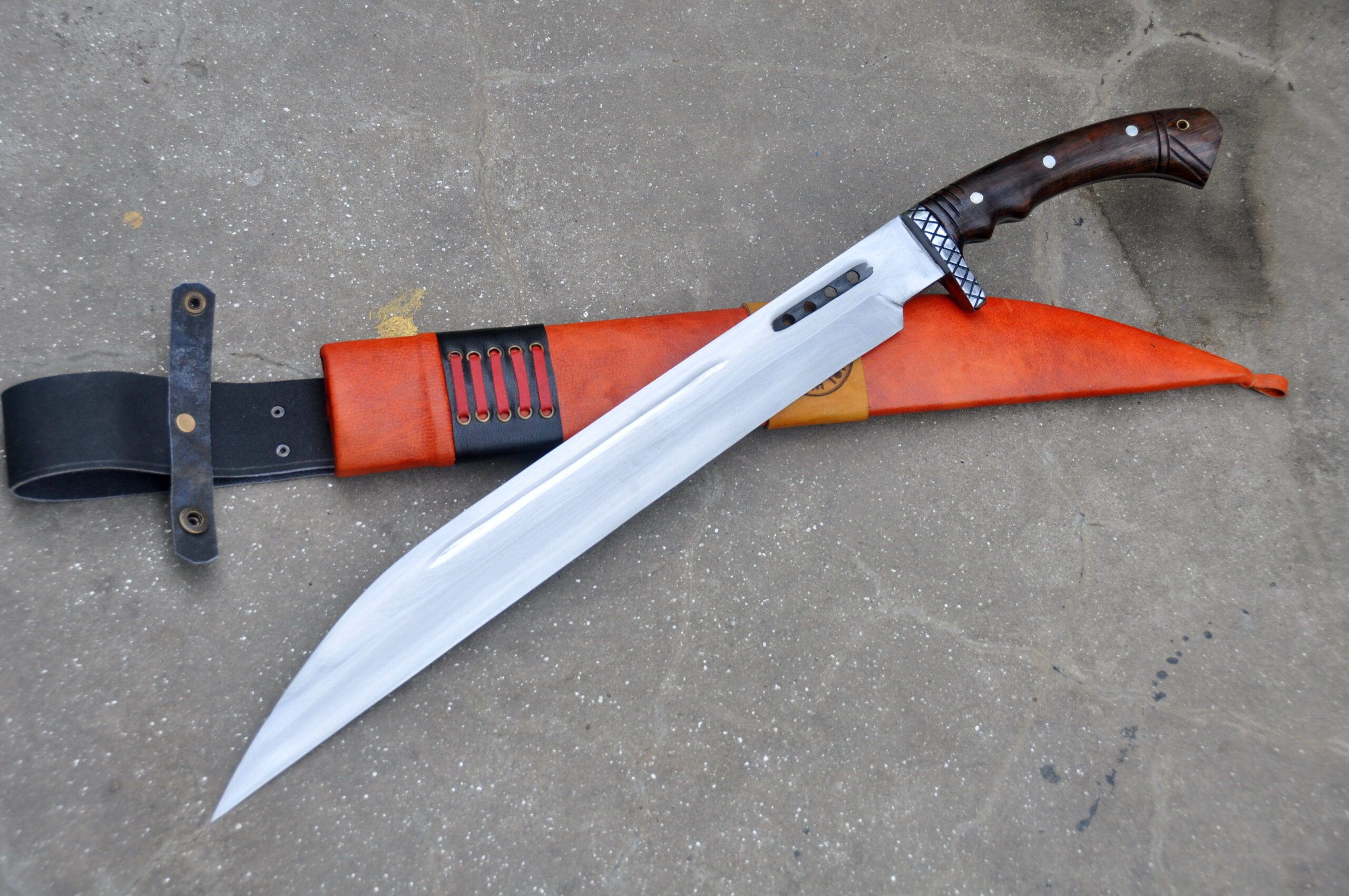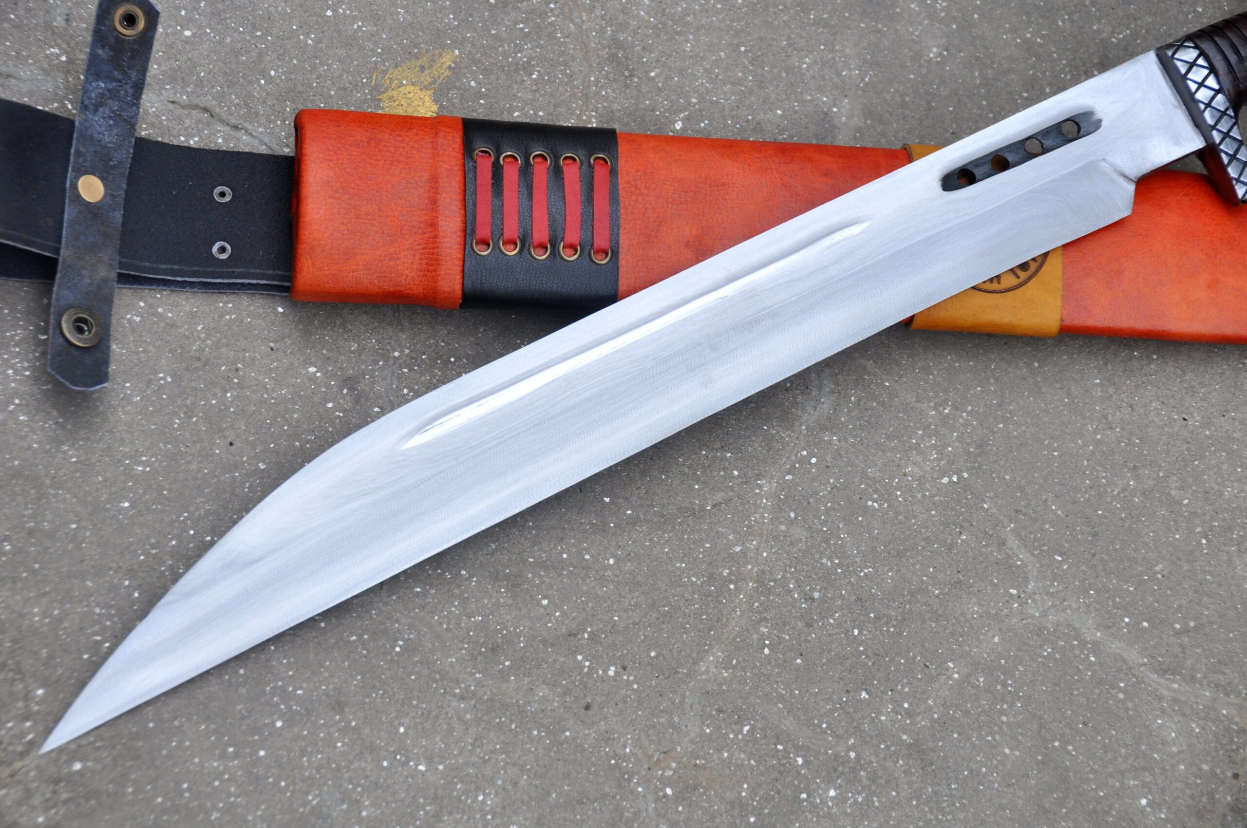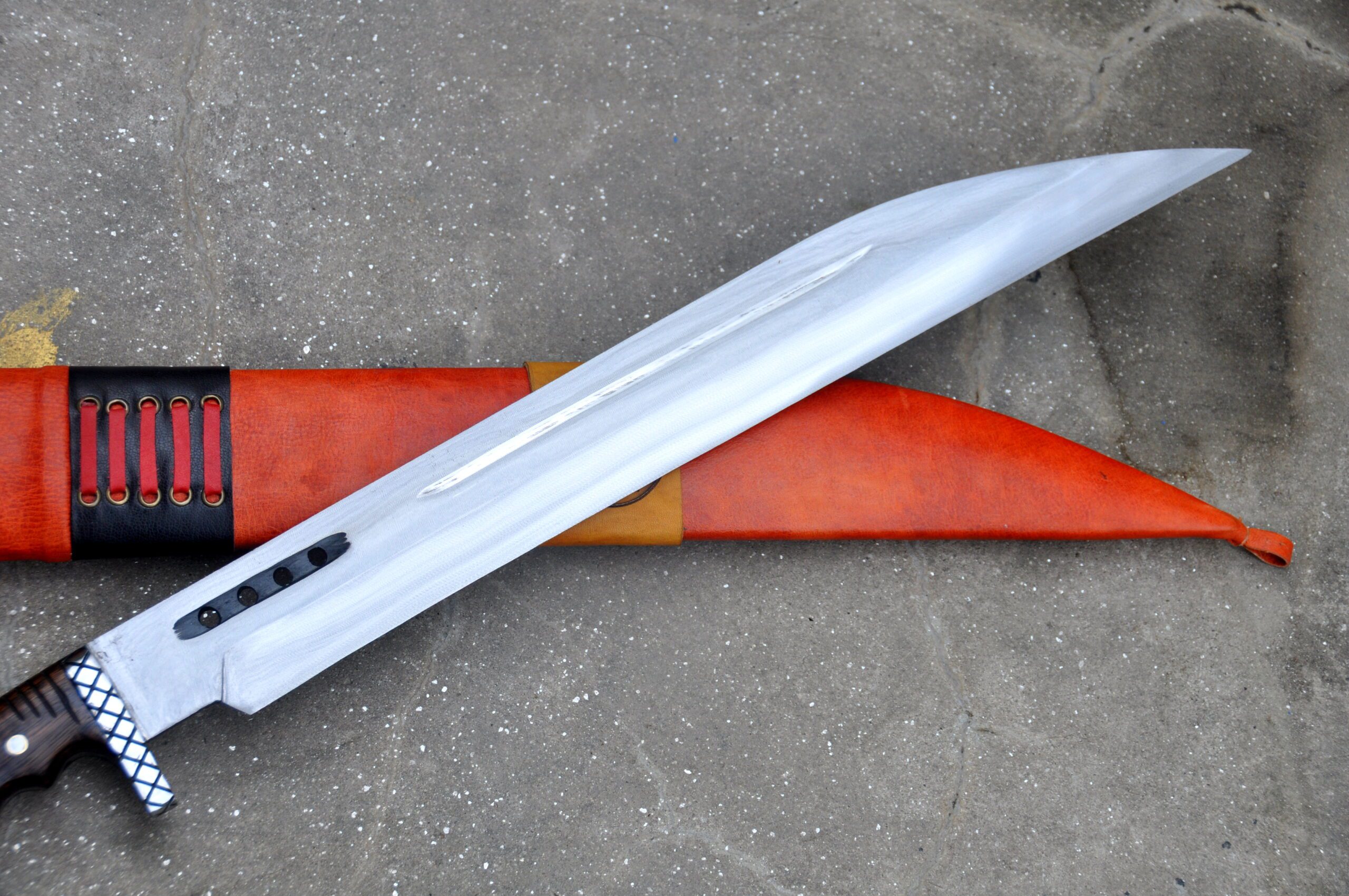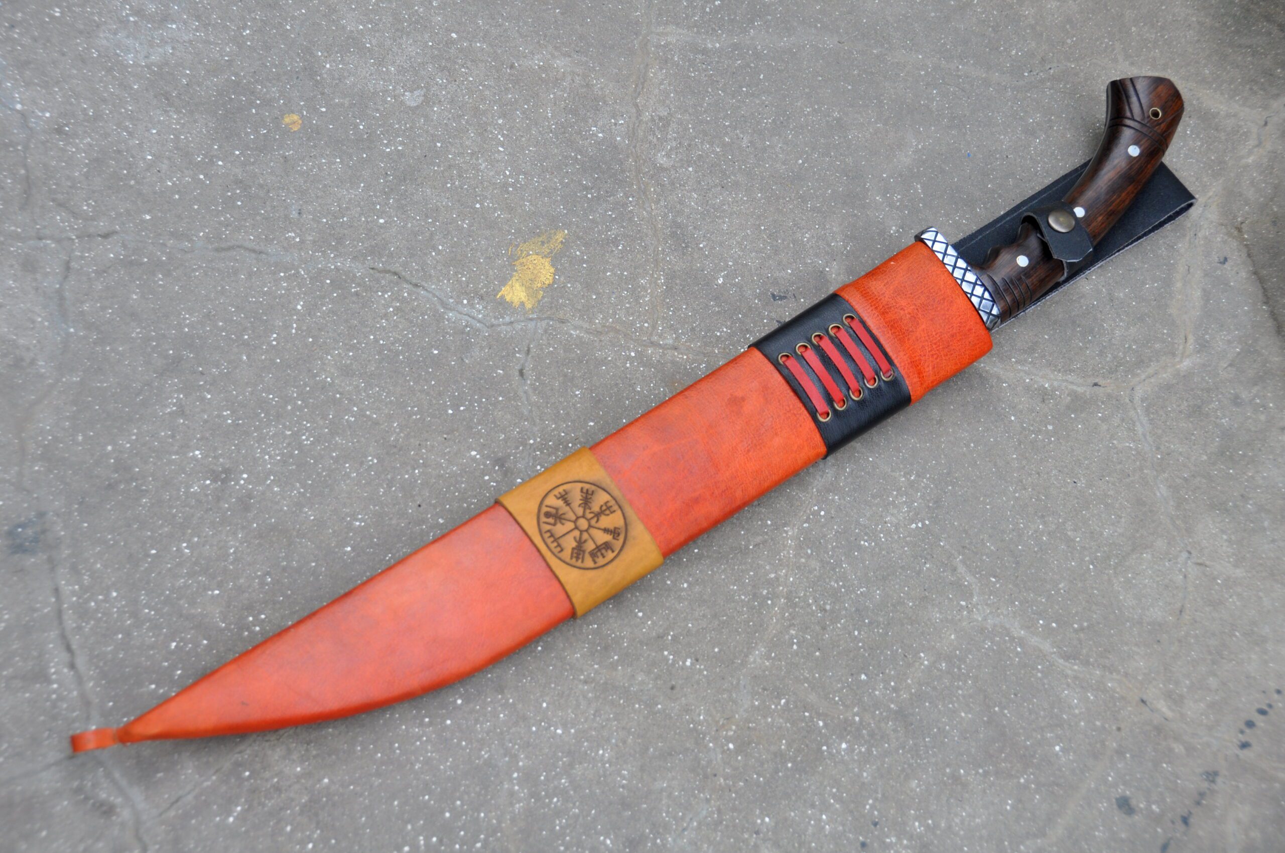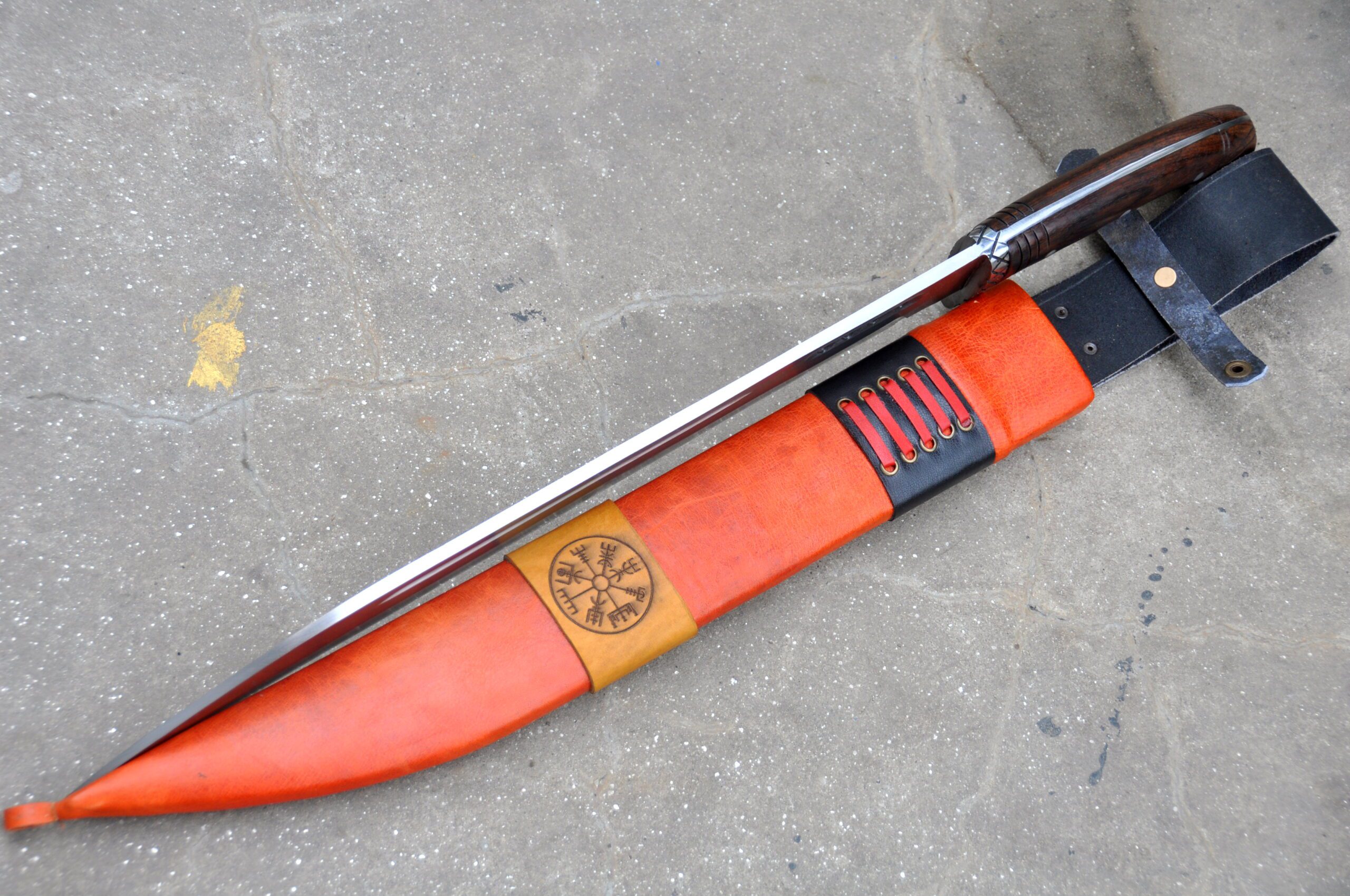Completing the authentic Viking look, the sword includes a vibrant red scabbard crafted from cottonwood and covered with high-quality yak leather, offering reliable protection and convenience when carrying your blade.