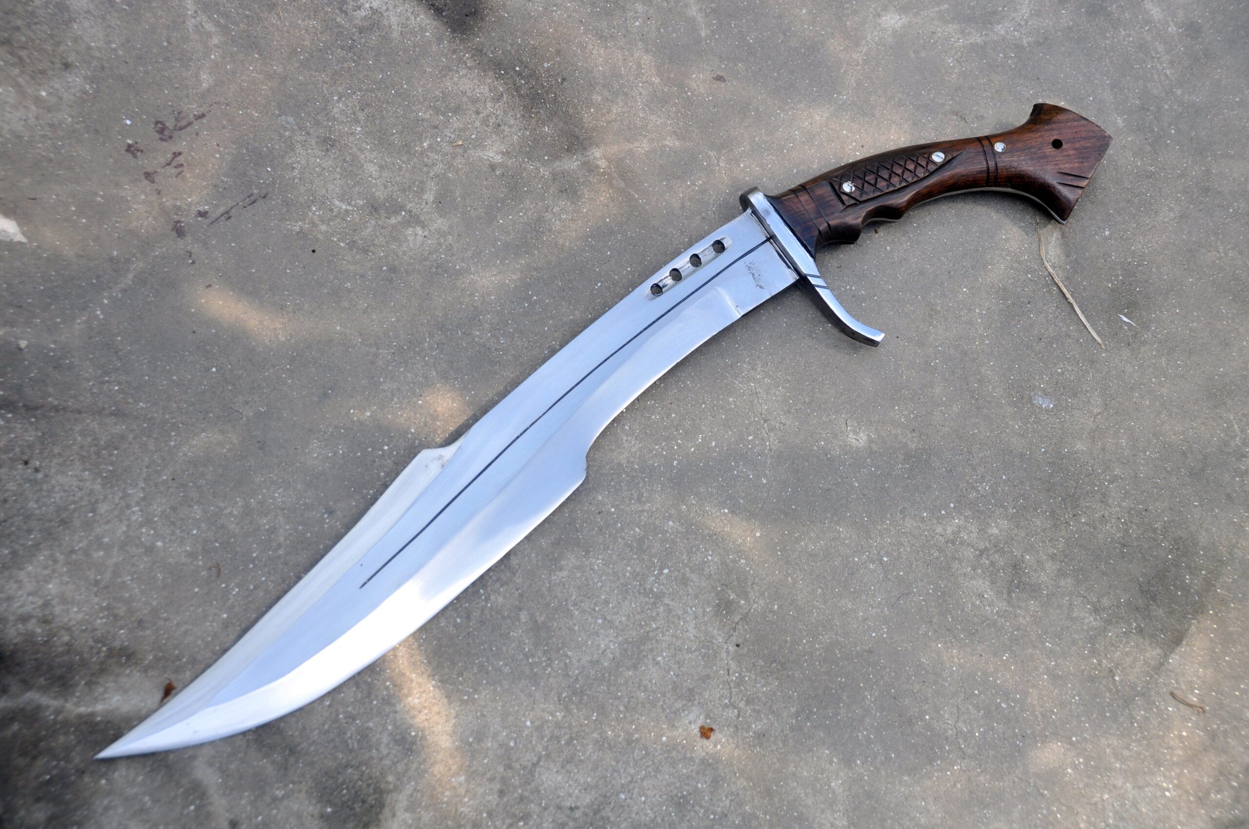 The Spartan warriors famously relied on short, machete-like swords characterized by their heavy tips and curved blades, ideal for swift and powerful cutting strikes. This functional replica echoes the iconic weapon wielded by King Leonidas in the legendary Battle of Thermopylae, vividly portrayed in the movie 300.