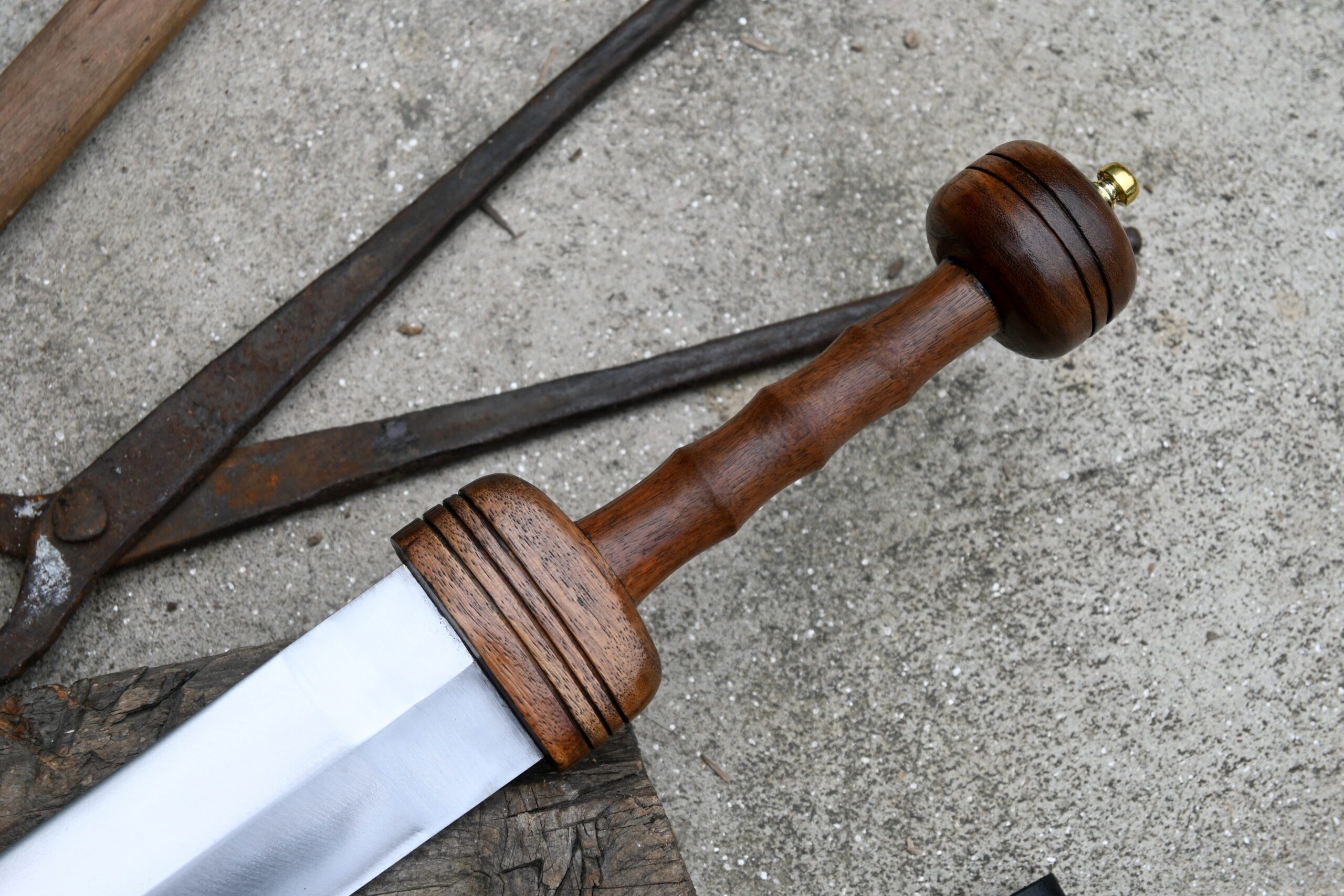 The slim, durable rosewood handle balances weight towards the blade for impactful strikes, with a rounded pommel providing grip support.