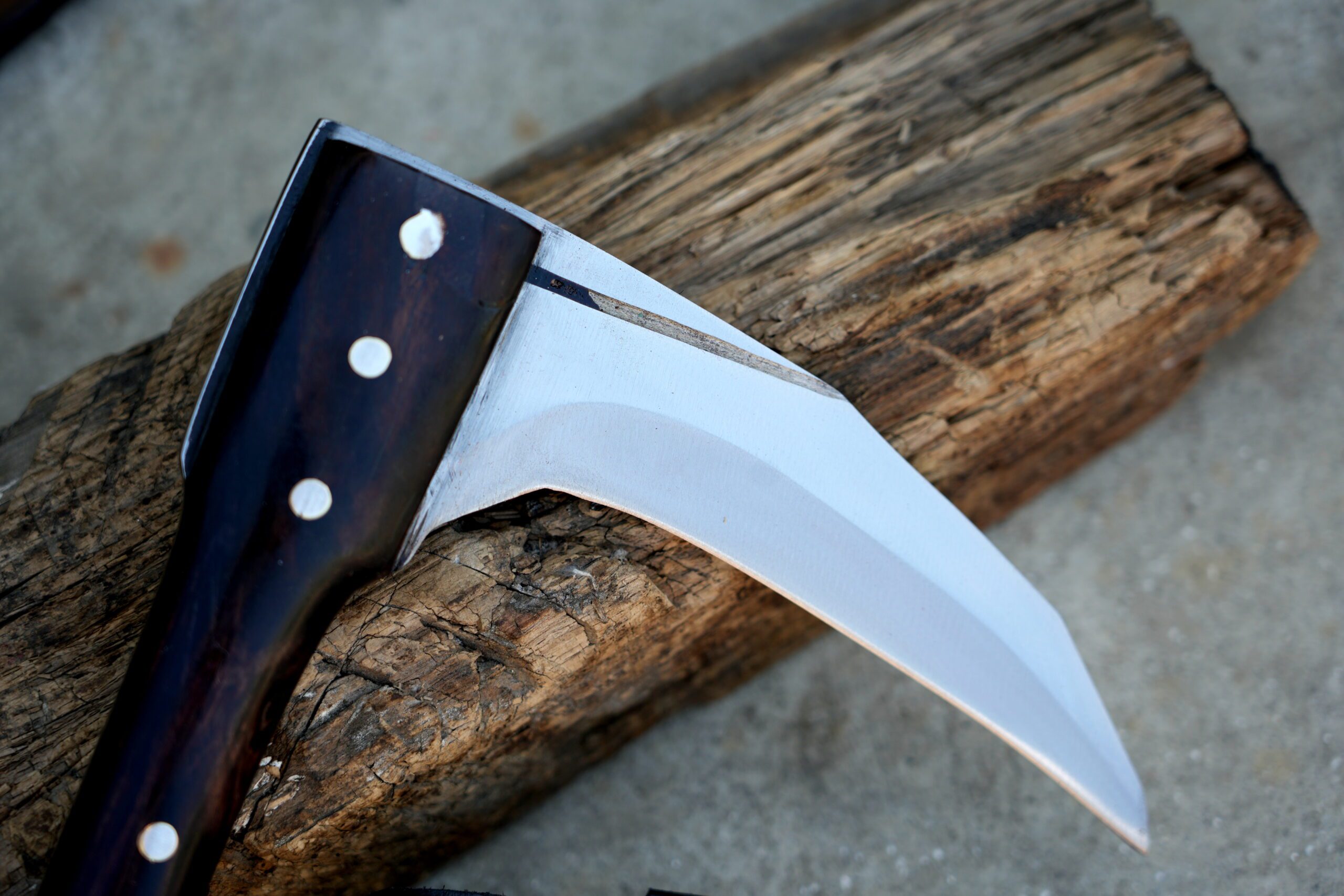 This fully functional Kama knife is ready for light cutting practice, hand-forged from resilient 5160 spring steel—renowned for its strength and reliability in demanding tasks. The sharpened blade offers excellent performance for both martial arts training and display.