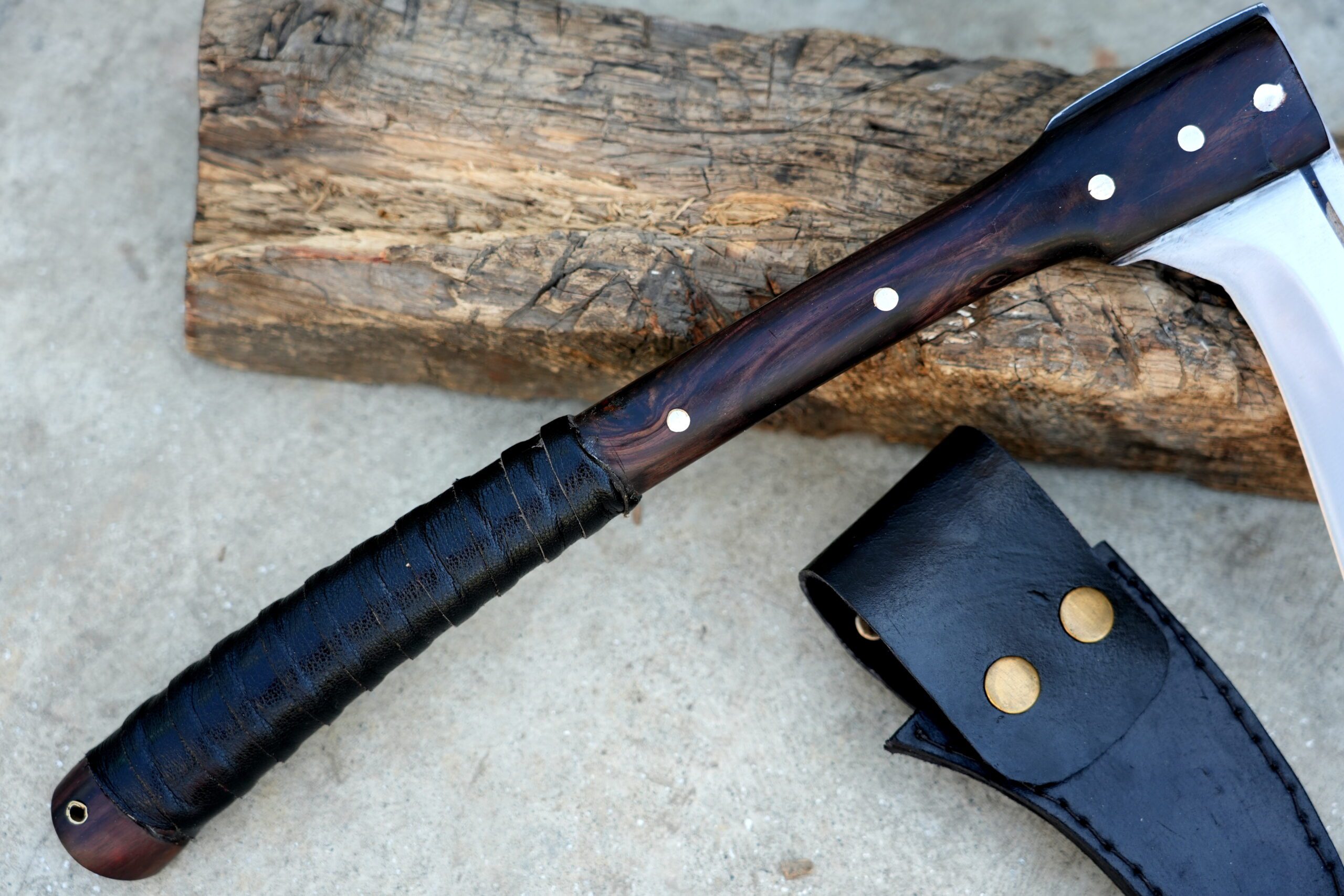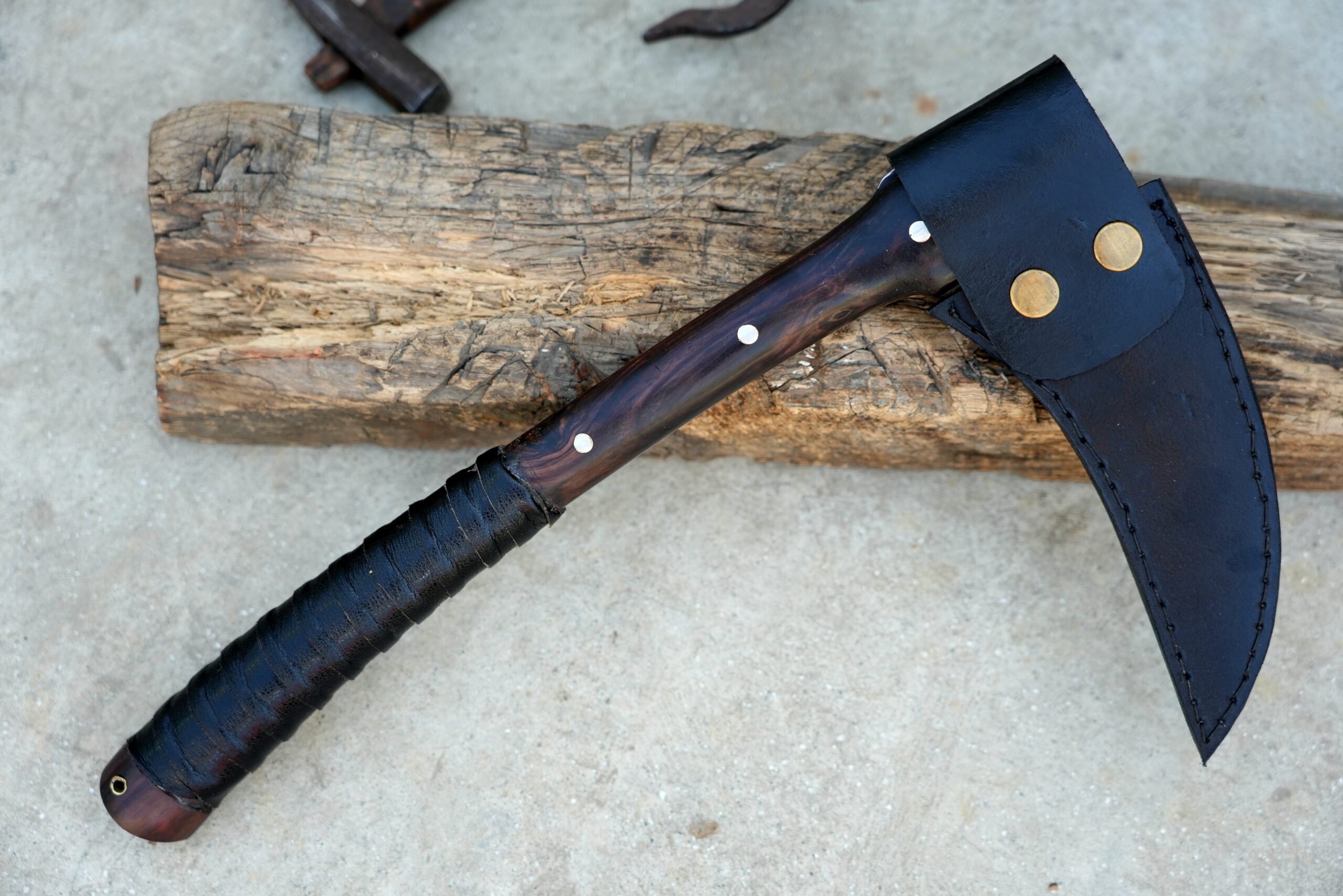 Completing the weapon, a custom-fitted scabbard provides full coverage for safe storage and easy transport.