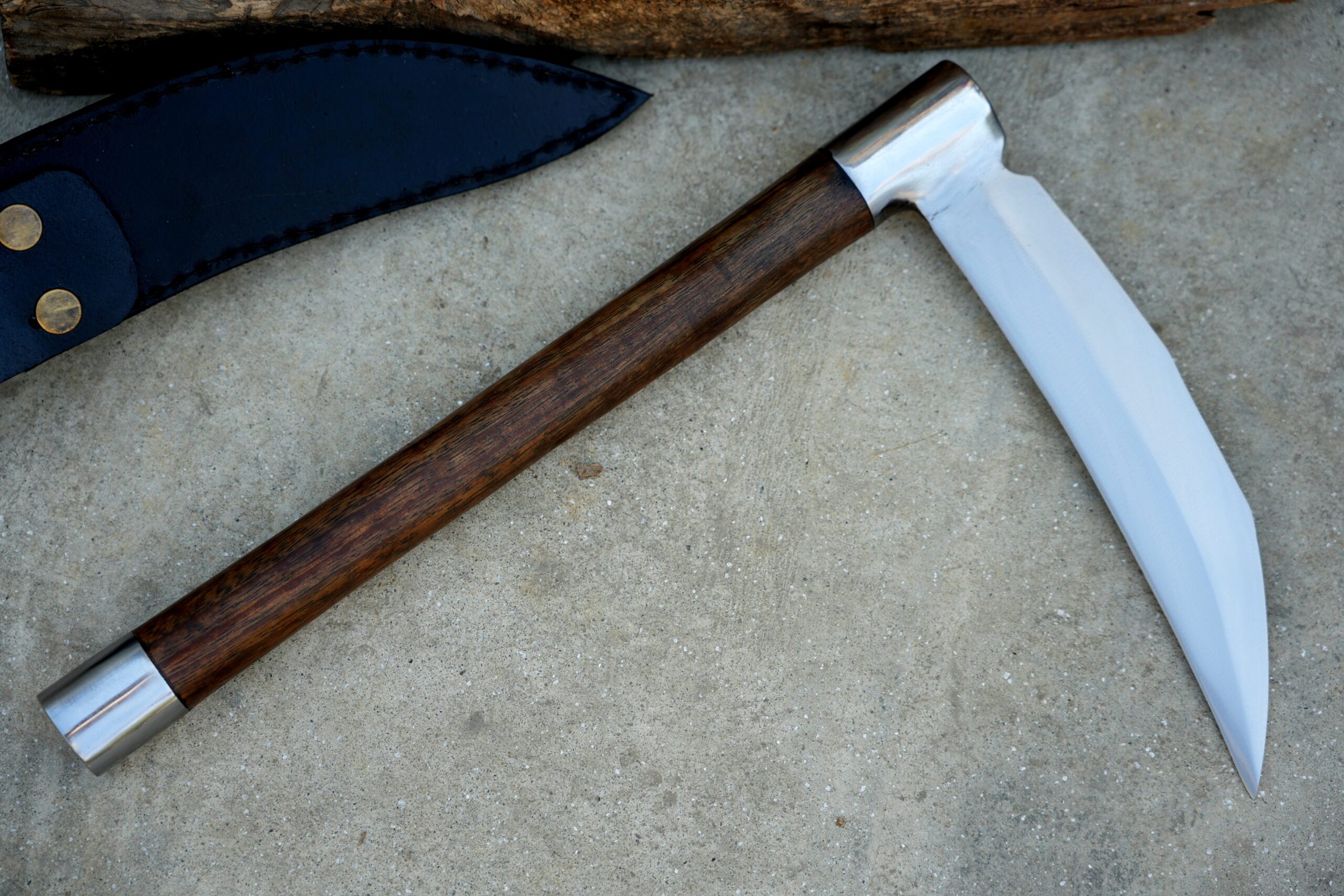 The Kama knife, originating in East Asia, was traditionally a farming sickle that evolved into a versatile weapon for both offense and defense. This replica honors the Japanese Kama design but features a longer blade than the traditional form, offering extended reach and functionality.