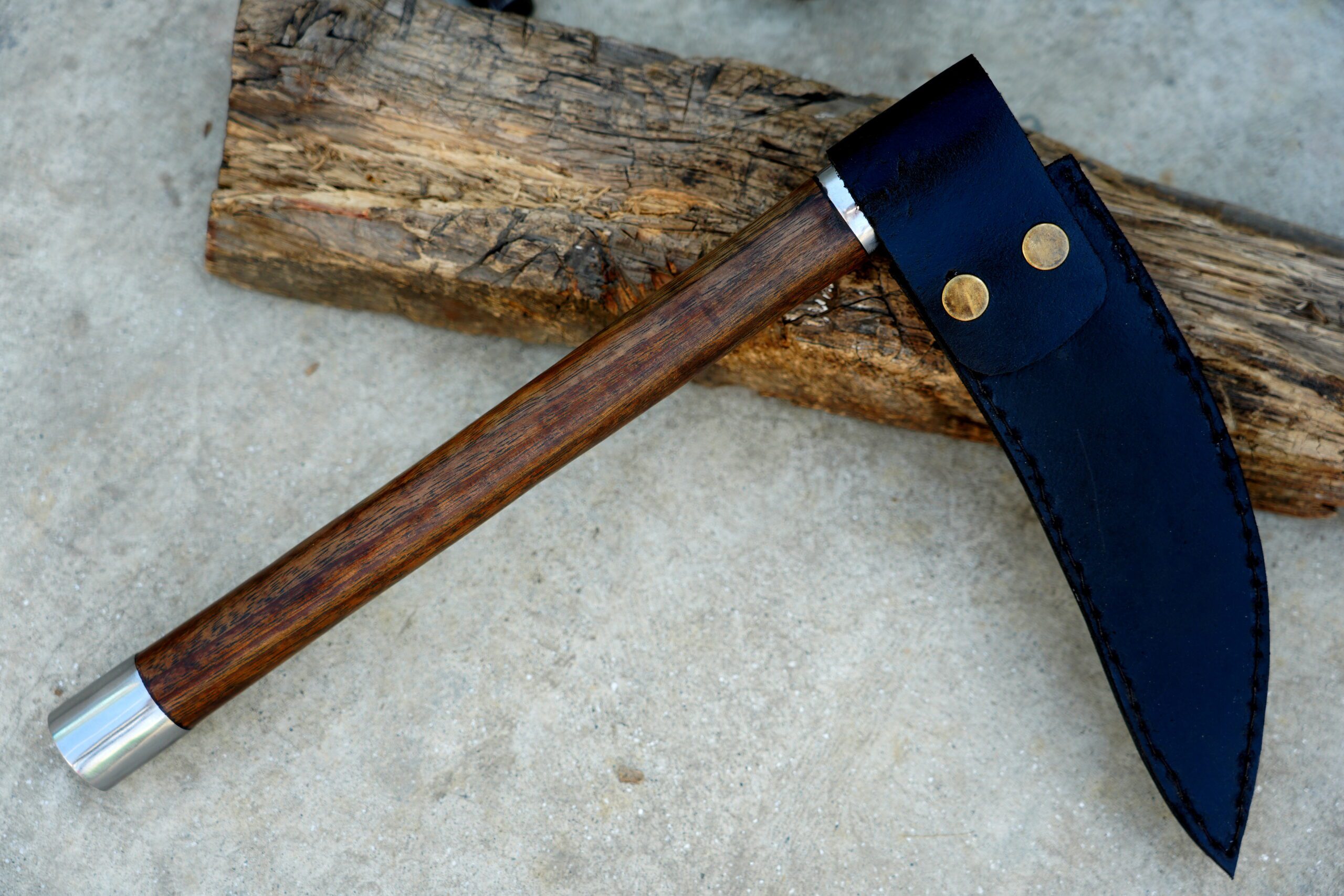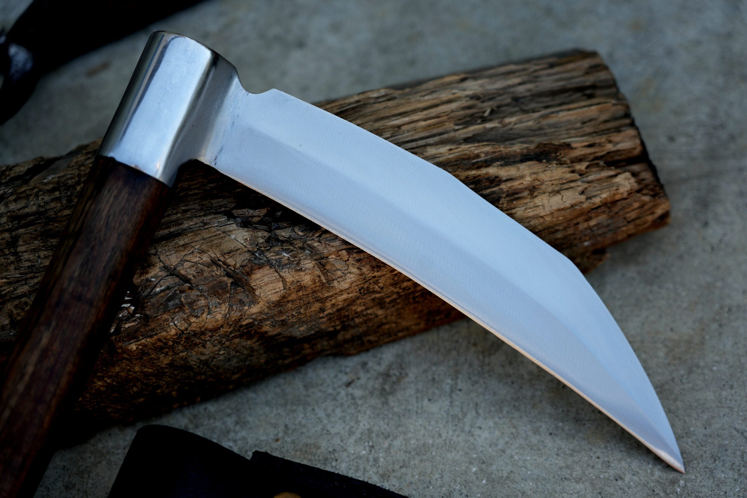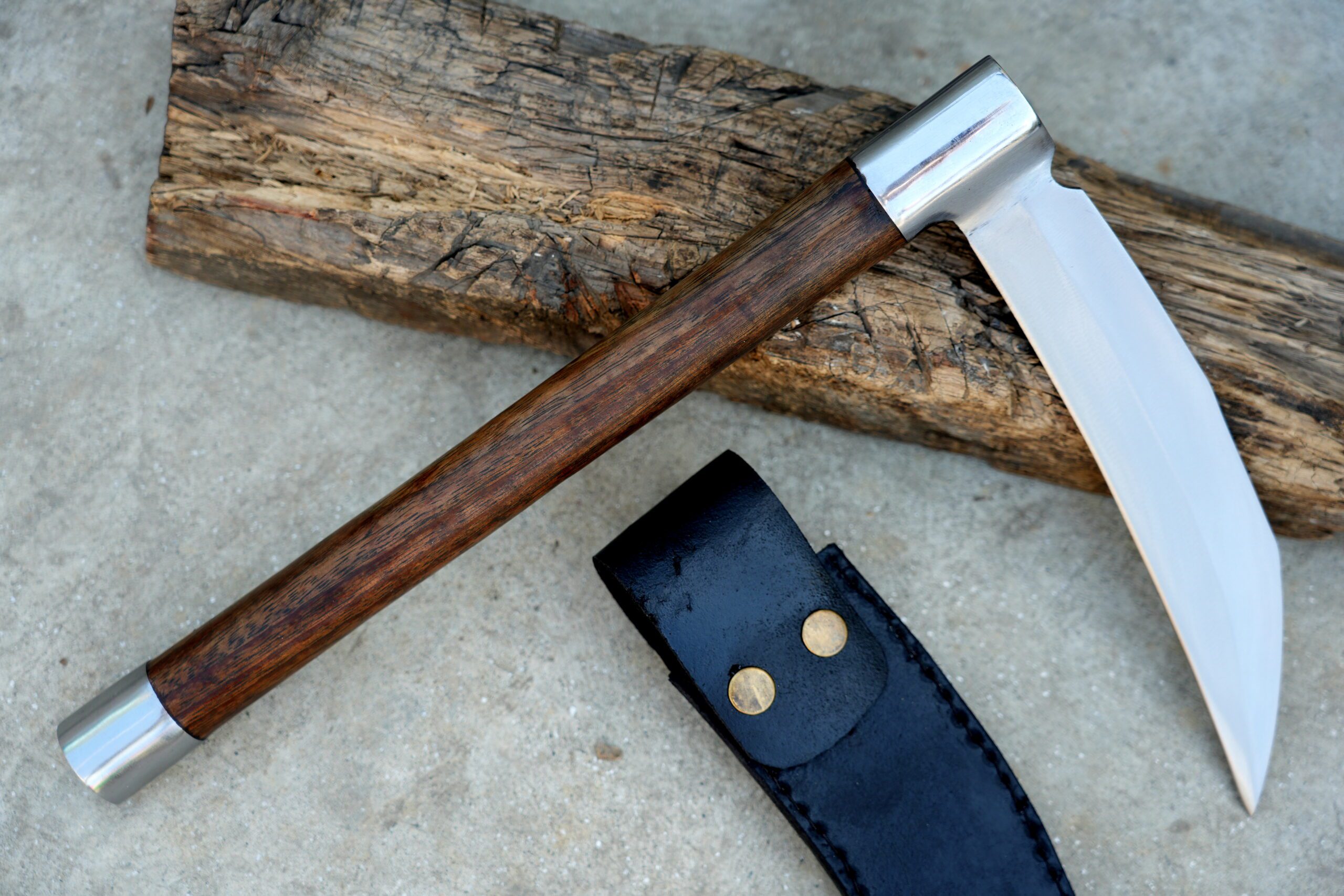 Hand-forged from resilient 5160 spring steel, the blade delivers exceptional durability, making it suitable for light cutting practice and perhaps even agricultural use.