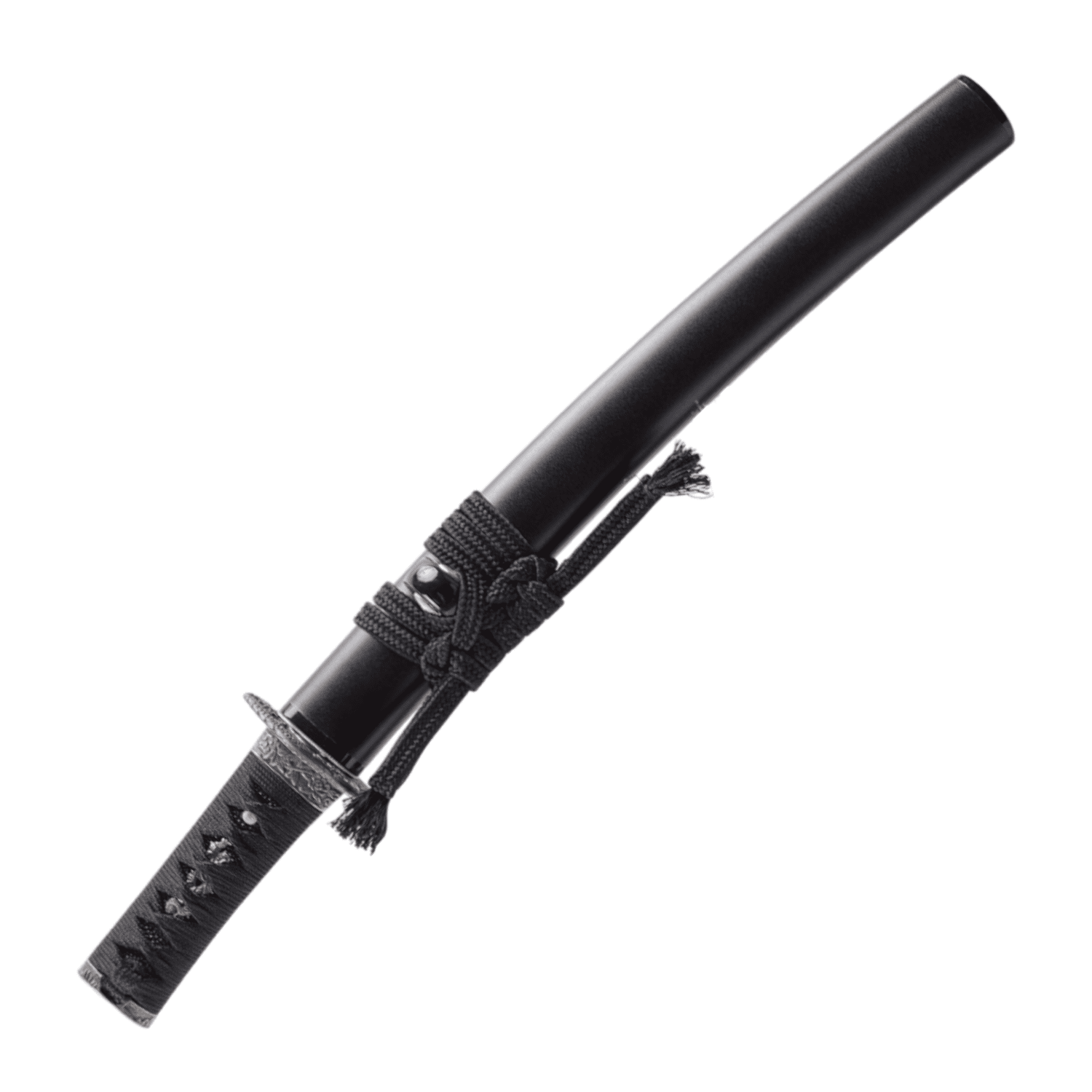 The scabbard is of hardwood, polished smooth, and fitted with a sageo cord for proper tying. Clean and simple.