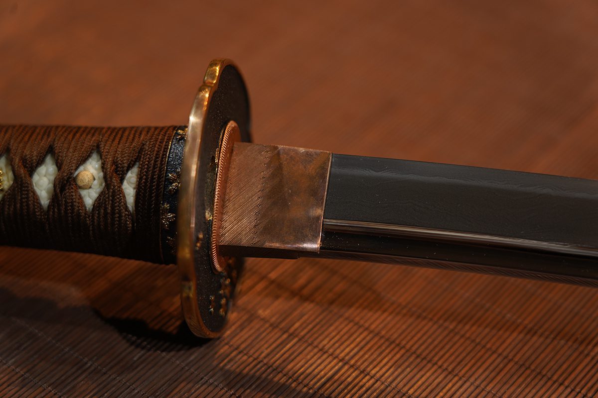 Differentially hardened and clay tempered, the blade is Sashikomi Grade A polished to reveal a suguha (straight) hamon (temper line).