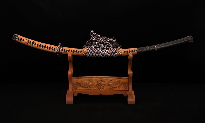 The full-tang, double-pegged blade ensures security and features a genuine hamon, achieved through historically accurate clay tempering for perfect hardness. The blade details are even further enhanced through a long and very intricate polishing process, that involves the use of traditional hazuya stones. The handle, traditionally wrapped with rough rayskin under a smooth silk tsuka-maki, allows for a firm grip.