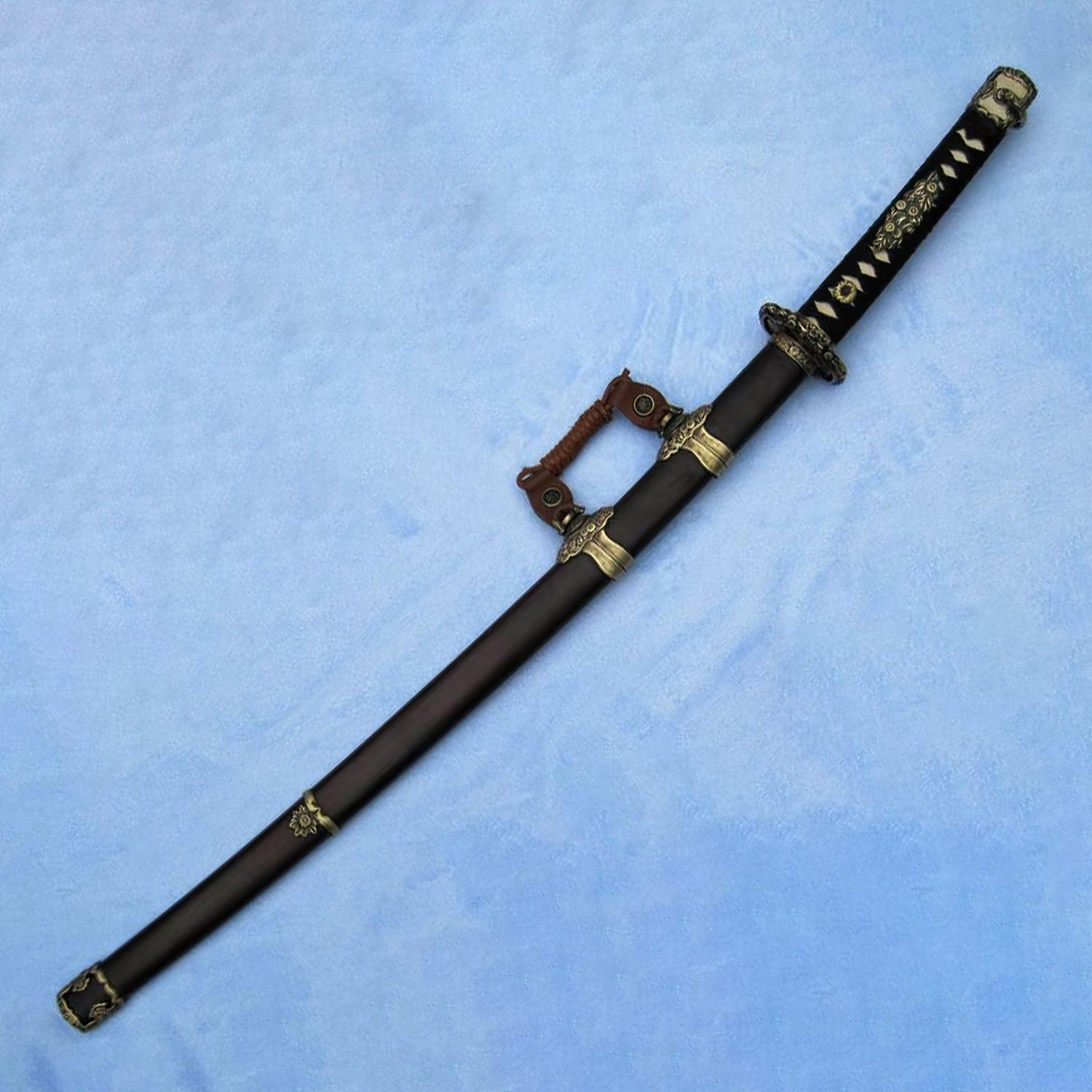 Combined with the elegant brass fittings and saya (scabbard) made of high quality ebony, this sophisticated looking tachi is a must have for any collector.