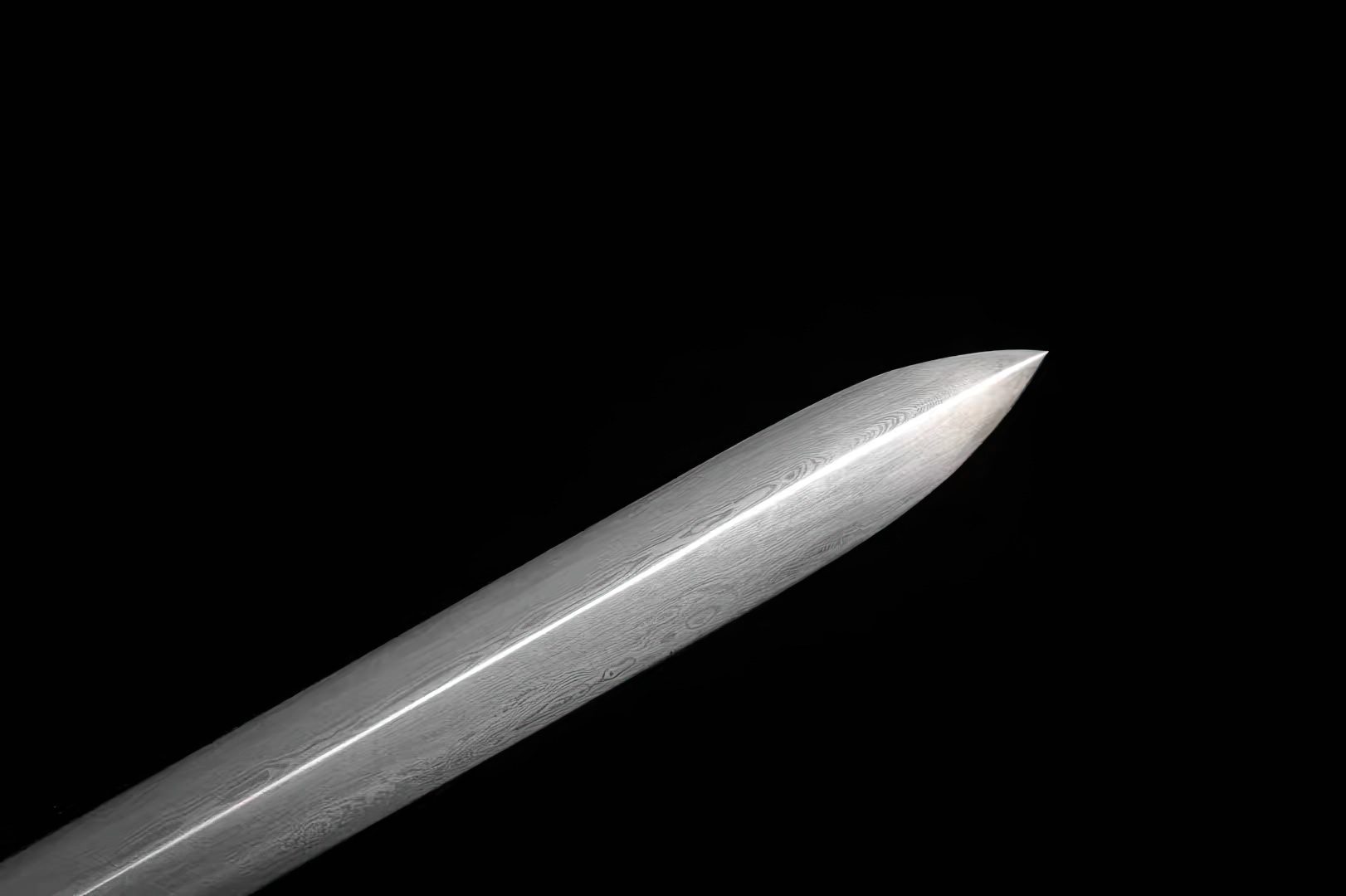 This Cane Sword, which follows a traditional Chinese Jian sword design, is one of the highly respected and oldest-edged weapons in Chinese history. It is hand-forged out of the mysterious Damascus Steel. This steel is renowned for its enticing layers that dance across the blade, all of which have been further enhanced by hand polishing, quenching, and proper heat treatment to achieve ideal hardness levels.