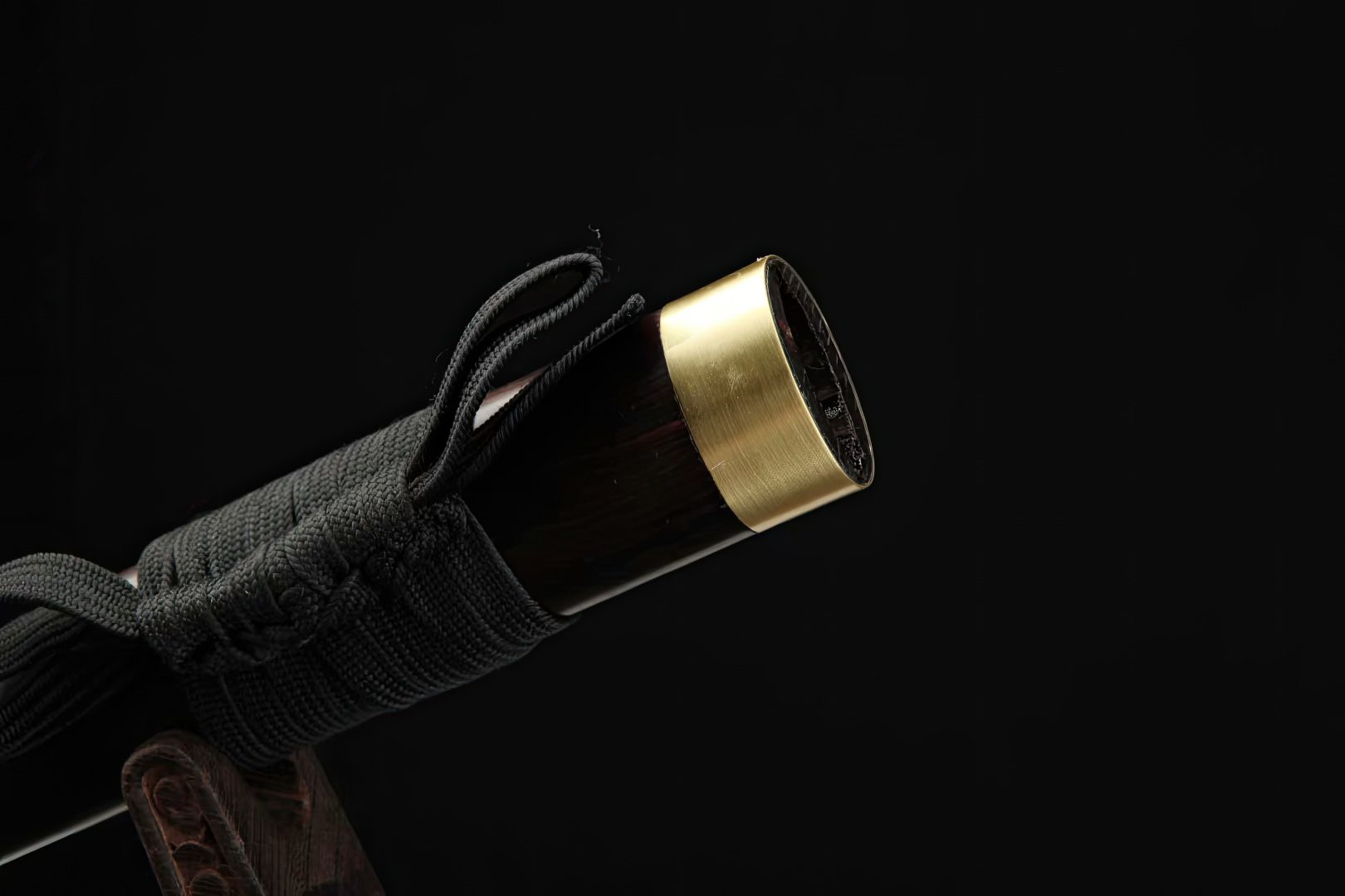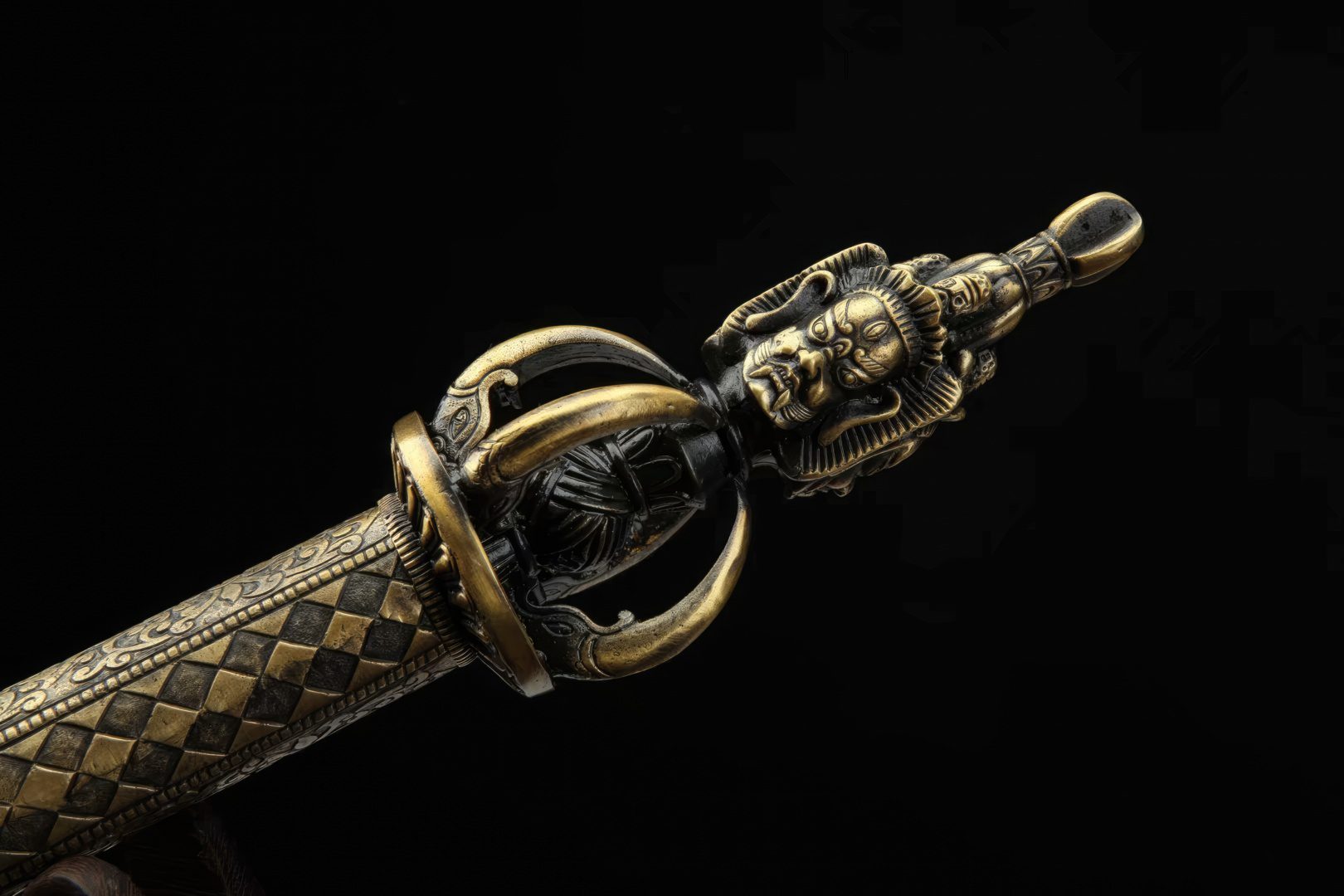 The 8-sided blade is polished using the hazuya stone method, further enhancing its shine and sharpness. The fittings and mountings, composed of copper and brass, showcase a large dragon handguard and Dharma faces as the pommel. The handle and scabbard are crafted from quality dark ebony wood. Free engraving is an option, and the sword includes a complimentary bag for safekeeping.