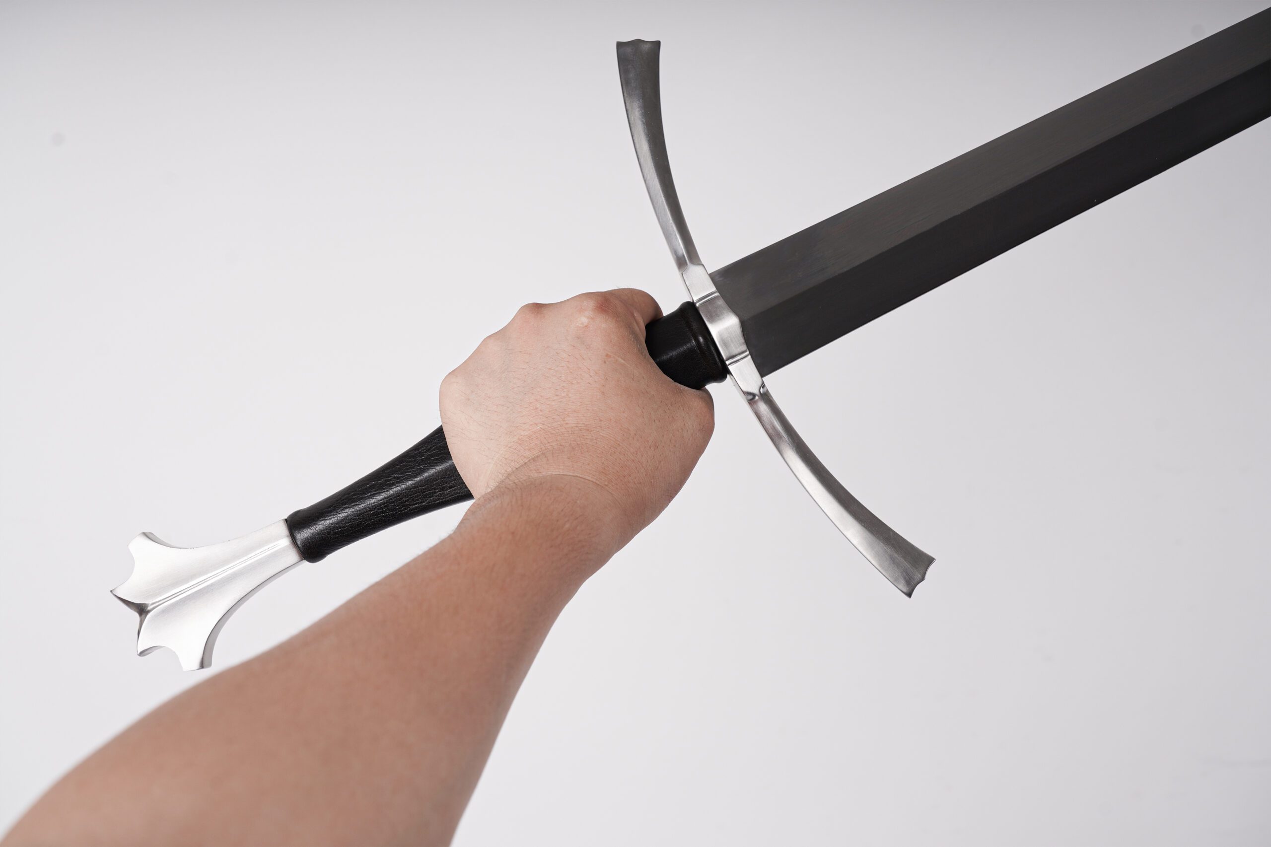 ShadowDancer’s interpretation of a late-Gothic quatrefoil longsword, built on Oakeshott Type XVIIIb. This slender, fullerless, diamond-section blade in hardened 9260 spring steel is quick in the hand and drives confident thrusts while retaining clean cutting authority—often regarded as one of the most popular late-medieval fighting profiles across Europe and a favorite template for modern sword training.
