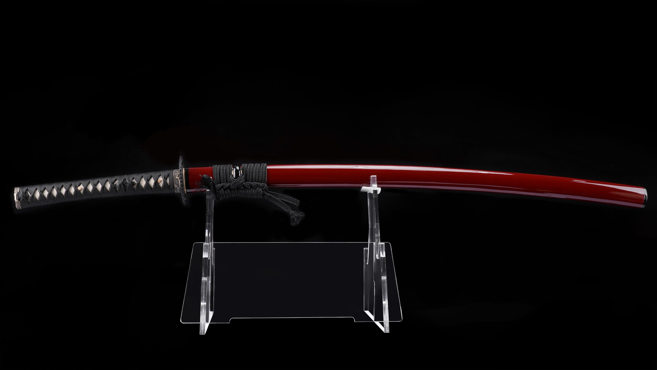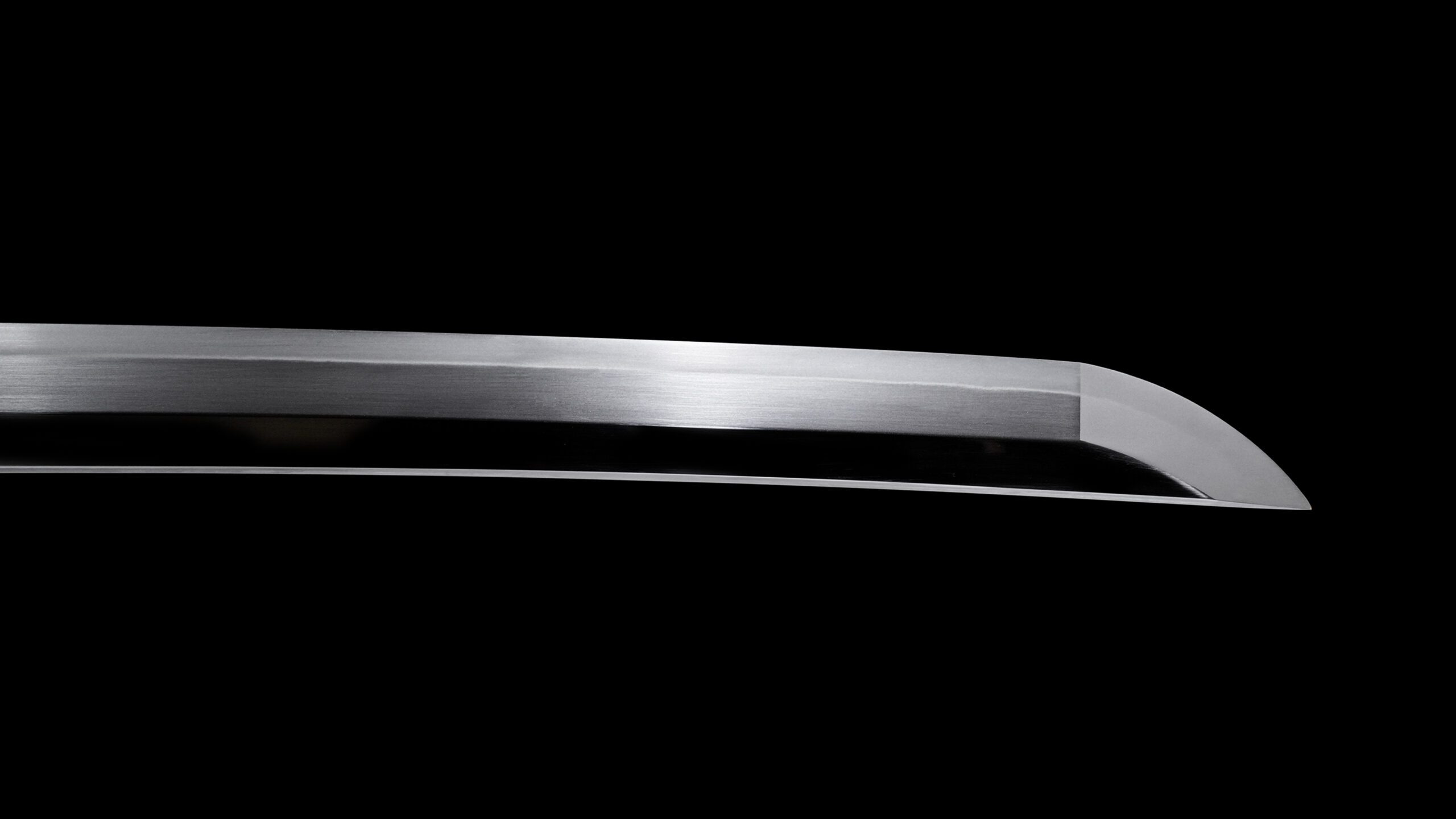 Shadow Dancer's Crucible Steel Suguha Clay Temper Sashikomi Polish Katana is an imposing piece, with a shinogi zukuri (curved with yokote and shinogi close to the mune) blade. As expected from its name, the blade is forged from Crucible steel, differentially hardened, clay tempered, and Sashikomi polished to reveal a beautiful suguha (straight) hamon. This blade has a real yokote.