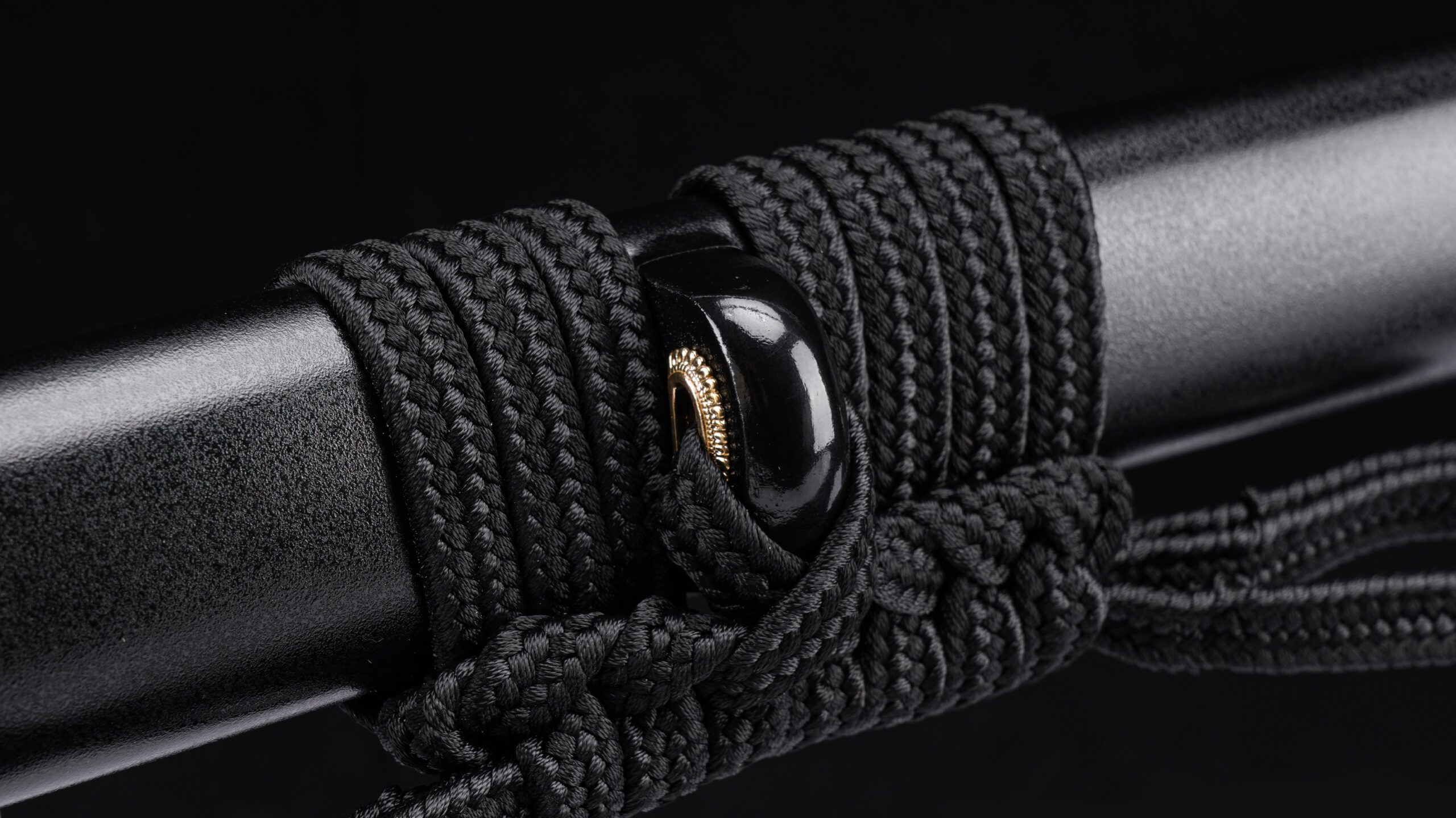 Shadow Dancer's Crucible Steel Sanbonsugi Clay Temper Sashikomi Polish Katana is an imposing piece, with a shinogi zukuri (curved with yokote and shinogi close to the mune) blade. As expected from its name, the blade is forged from Crucible steel, differentially hardened, clay tempered, and Sashikomi polished to reveal a beautiful suguha (straight) hamon. This blade has a real yokote.